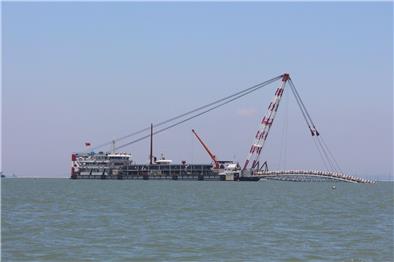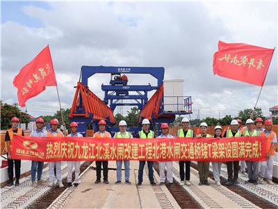 北溪水閘改建工程北港交通橋預制梁鋪設(shè)完成